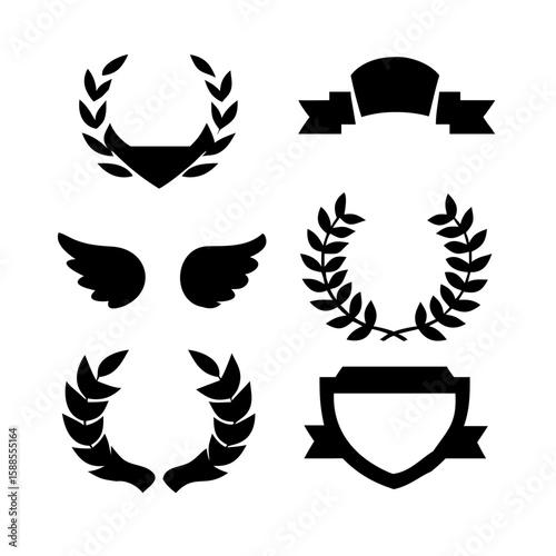 set of Laurel wreath, wing, shield, ribbon, banners, Containing .shield, ribbon, banners for awards, heraldry, logos, badges, and branding designs vector illustration Collection of vintage heraldic