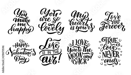 Set of Lettering Quotes about love. Hand drawn typography posters. For greeting cards, Valentine day, wedding, posters, prints or home decorations. Vector