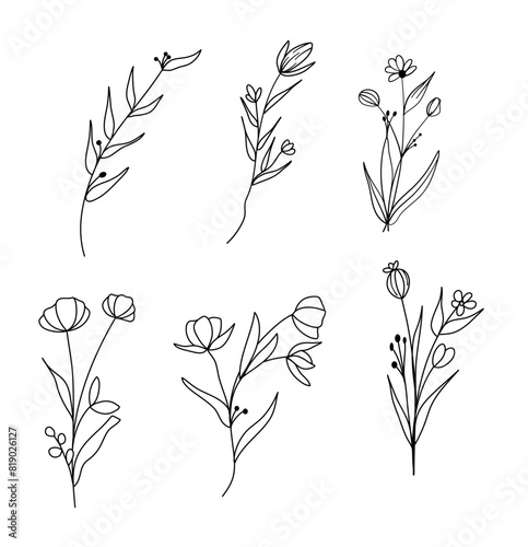 flower, vector, outline, simple, floral, illustration, nature, design, plant, line, element, spring, abstract, set, graphic, art, blossom, decorative, decoration, background, isolated, summer, icon, leaf, black, drawing, symbol, garden, pattern, modern, shape, ornament, signs, silhouette, beauty, print, drawn, botanical, vignetting, white, flora, chamomile, logotype, beautiful, flat, hand, trendy, doodle