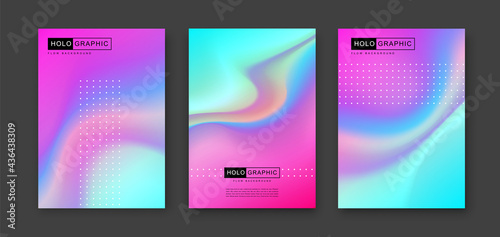 Set of Modern holographic pearl fllow abstract covers. Liquid vector illustration background