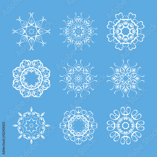 Set of monogram ornate mandalas. Elegant circular pattern.