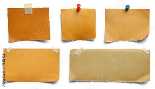 set of note paper piece label vintage grunge tape label ripped tag message. Generated image