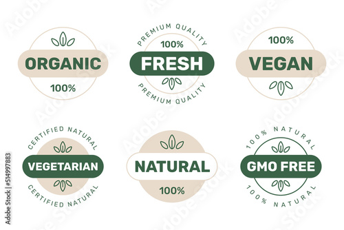 Set of organic, fresh, vegan and natural products label. Ecology icon, badge and logo collection.