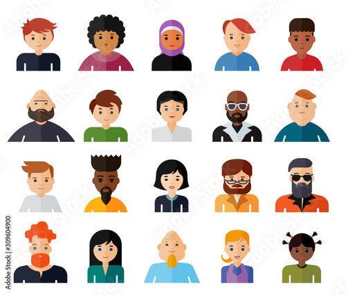 Set of people avatar flat design icons. Collection of avatars related to various types of people face.