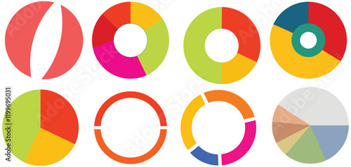 Set of Pie chart color wheel of business report infographic. Colorful Circle section graph and segment. 2,3,4,5,6,7,8,9,10,11,12 slice steps process cycle. Progress sector round diagram part symbol.
