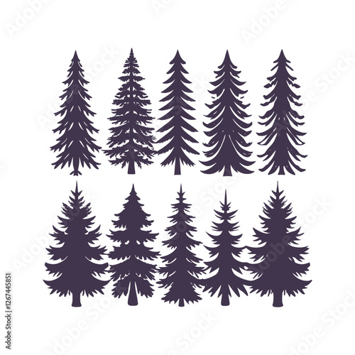 Set of Pine Tree Silhouettes: Minimalist Vector Illustration