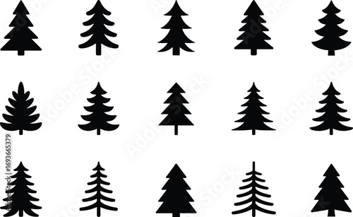 Set of Pine Tree Silhouettes Vector Icons for Forest, Nature, Winter, Holiday, Christmas Design, Minimal Decoration, and Outdoors