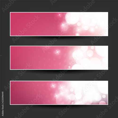 Set of Pink, Claret and Purple Horizontal Sparkling Banner Designs for Christmas, New Year, Seasonal Events or Holidays