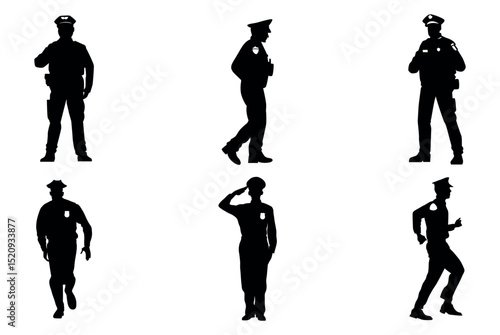 Set of policeman silhouette vector on white background, officer.