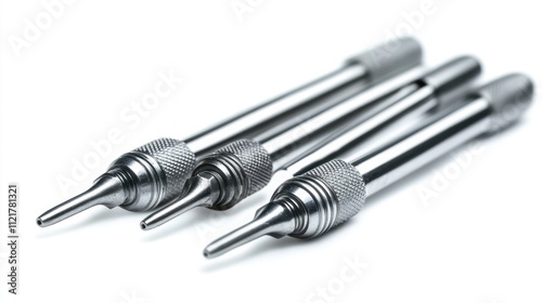 Set of precision screwdrivers with interchangeable nozzles isolated on a clean white background for tool and hardware presentations