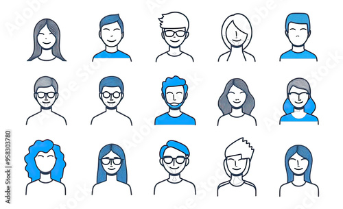 man, avatar, set, professional, business, icon, blue, black, transparent, woman, human face, vector, illustration, icon, cartoon, collection, portrait, adult, symbol, human head, flat, design, line, isolated, background, cut-out