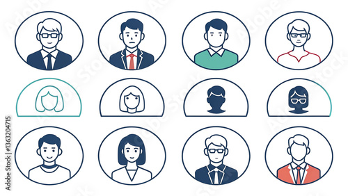 Set of Professional Business Portraits Collection Featuring Diverse Male and Female Characters for Corporate Use