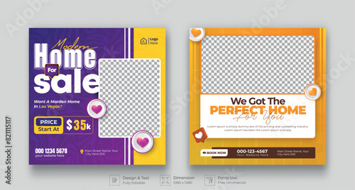 Set of Real estate social media post banner template. Modern home square Minimal and Trendy social media layouts. Instagram post. Facebook banner.