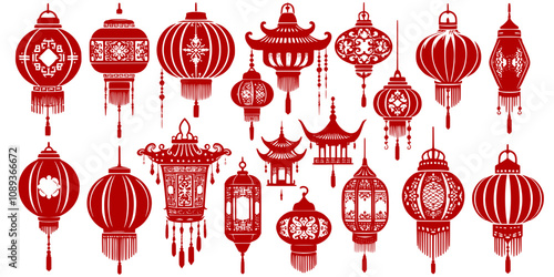 chinese new year, design, lantern, new year, set, new, year, card, christmas, christmas, vector, decoration, illustration, pattern, ornament, silhouette, celebration, holiday, gold, jewellery, art, tree, icon, chandelier, antique, shape