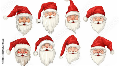 christmas, santa, hat, holiday, claus, christmas, vector, winter, celebration, cap, icon, illustration, decoration, gift, symbol, santa, red, merry, cartoon, set, snow, season, fur, new year, tree
