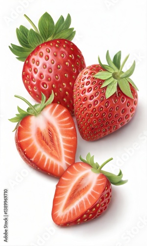strawberry, ripe, juicy, white, set, isolate, strawberry, isolated, halved, background, whole, fruit, food, berry, dessert, freshness, diet, leaf, macro, cut, half, red, fresh, sweet, healthy, green, organic, delicious, fruit, closeup