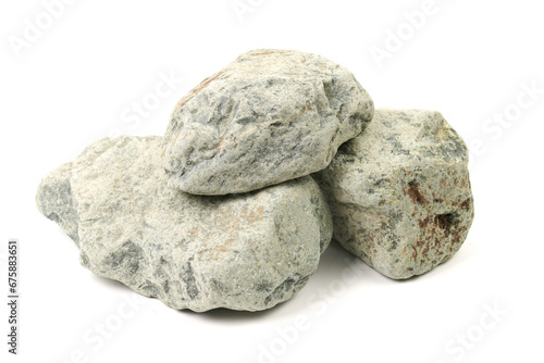 Set of sauna stones isolated on white background. Natural mineral rock rodingite