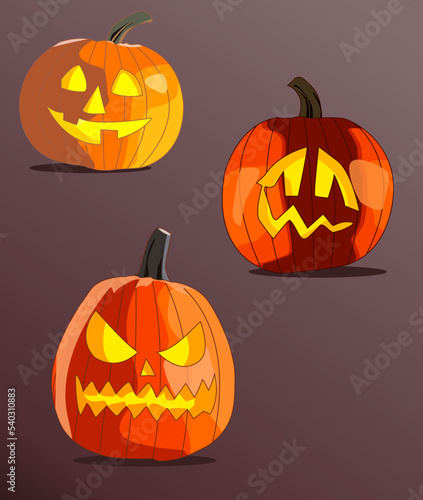 Set of scary halloween pumpkin on the brown gradient background. element for logo, label, emblem, sign