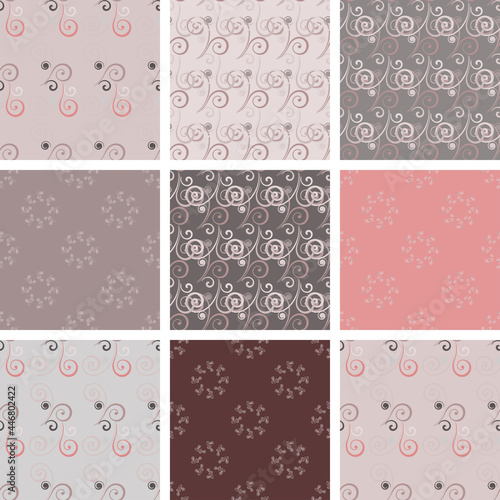 Set of seamless vintage patterns with romantic curls. Ideal for printing, textiles