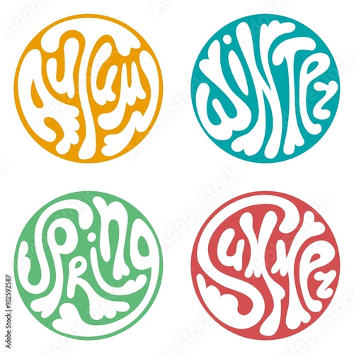 vector, illustration, nobody, label, round, circle, set, emblem, word, inscription, season, lettering, calligraphy, summer, winter, spring, autumn, style, graffiti