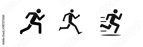 Set of silhouette image of running man icon, isolated over on transparent white background