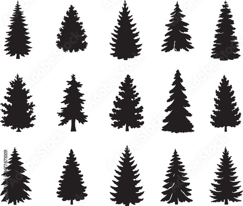 set of silhouettes of trees. pine trees isolated images. spruce tree illustration for winter christmas