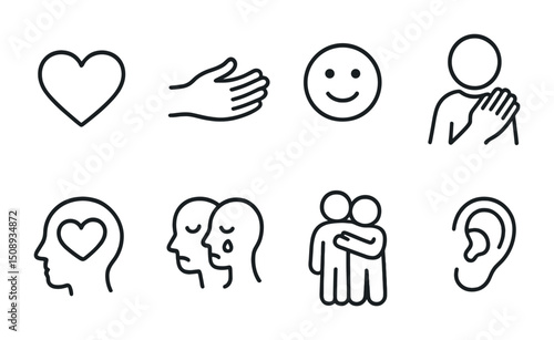 love, compassion, empathy, icon, nubes, smile, gesture, care, listening, connection, mind, emotion, support, kindness, understanding, design, positive, feeling, communication, symbol, illustration, simple, minimal, outline, interaction, affection