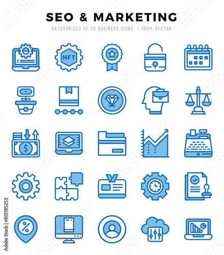Set of simple Two Color SEO & Marketing Icons. Two Color art icons pack.
