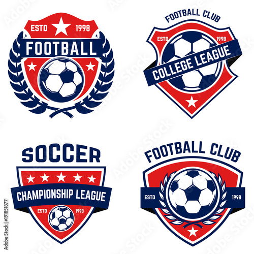 Set of soccer, football emblems. Design element for logo, label, emblem, sign.