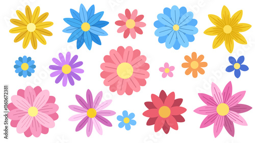 Set of spring colorful flowers. Floral vector elements for spring, summer, Easter and other designs. Cute flower heads icons on white background. Flowers Collection.