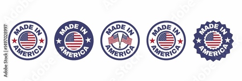 Set of Stamps made in the America, label set of made in USA, logo set made in the America, America flag, usa flag , tag, seal, icon, stamp, label, logo for American products, for packaging, advertise