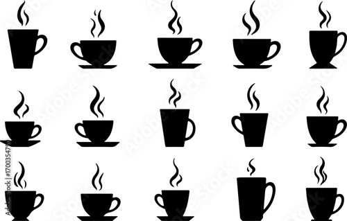 "Set of Steaming Coffee Cup Silhouettes – Vector Icons Collection"