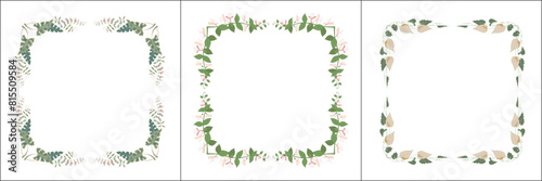 green leaf, floral, border, botanical, elegant, rectangular, square, vector, vintage