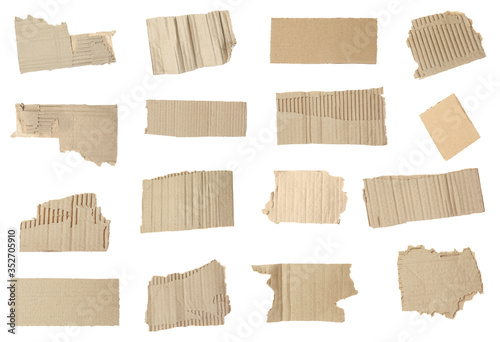 Set of torn cardboard pieces on white background