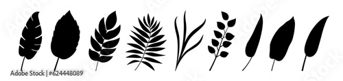 Set of tropical leaves silhouettes isolated on white background. Vector EPS10