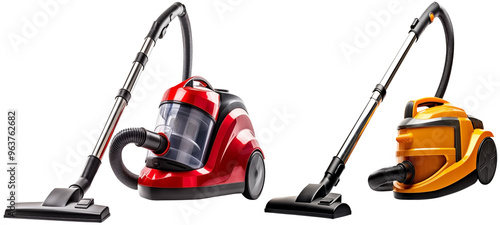 Set Of Vacuum cleaners PNG isolated on white and transparent background - Household Corded vacuum Cleaning equipment for Floor and Carpet cleaning