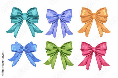 Set of various cartoon bow knots, gift ribbons Trendy hair braiding accessory vector illustration