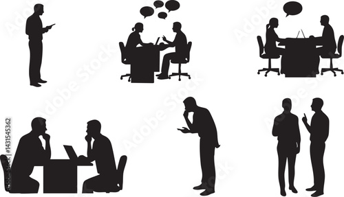 Set of Vector Silhouettes Featuring Business People, Elegant and Minimalist Design for Corporate and Professional Themes