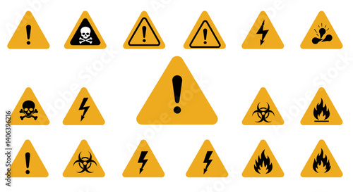 signs, icon, warning, danger, symbol, safety, hazard, vector, set, yellow, caution, road, illustration, radiation, traffic, attention, electricity, signs, voltage, triangle, biohazard, flammable, isolated, fire, high