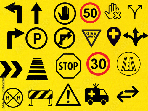 signs, icon, warning, symbol, danger, safety, vector, yellow, set, road, icon, caution, buttons, traffic, web, signs, electricity, street, alert, signal, design
