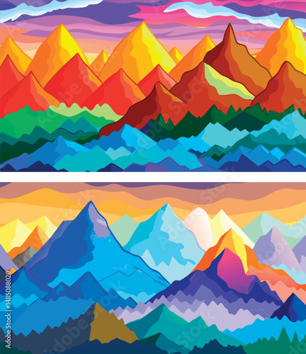 Set of watercolor mountain landscapes, hand-painted nature scenes, mountain wall art, scenic watercolor illustrations