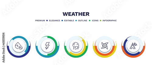 set of weather thin line icons. weather outline icons with infographic template. linear icons such as dew, bolt, sleet, tropical cyclone, indian summer vector.