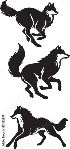 wolf, wolf, silhouette, vector, animal, wild, black, bold, running, howling, standing, sitting, walking, jumping, leaping, forest, nature, predator, beast, canino, fierce, hunter, strong, powerful, logotype, design, graphic, digital, illustration, tattoo, tribal, isolated, art, minimal, style, motion, symbol, icon, shadow, creature, wildlife, outline, solid, form, shape, majestic