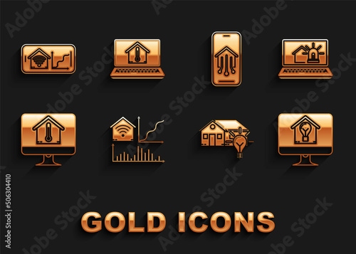 smart, house, technology, wi-fi, wi-fi, wireless, alarm, laptop, computer, vector, icon, isolated, set, gold, gold, black, security, control, bulb, monitor, light, design, power, energy, symbol, signs, electricity, illustration, temperature, home, cold, heat, thermometer, room, smartphone, phone, mobile, automation, concept, network, system, cyberspace, app, management, flat, modern, warm