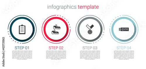 Set Sport training program, sneakers, Medal and Location gym. Business infographic template. Vector