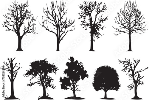 tree, silhouette, nature, vector, tree branch, forest, illustration, black, leaf, plant, oak, tree, pine, set, outline, palm, wood, art, autumn, design, landscape, park, leaf, birch, season