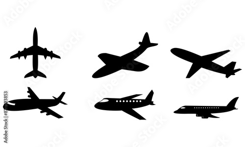 aeroplane, flight, fly, plane, transport, wing, aircraft, airliner, commercial, jet, silhouette, aviation, isolated, illustration, vehicle, passenger, landing, aeroplane, clip art, engine, fast, journey, navigation, arrival, trip, panel, travel, logotype, vector, design, graphic, icon, simple, abstract, line, company, business, corporate, set, template