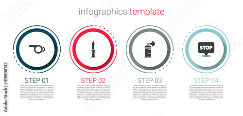 Set Whistle, Military knife, Paint spray can and Protest. Business infographic template. Vector.