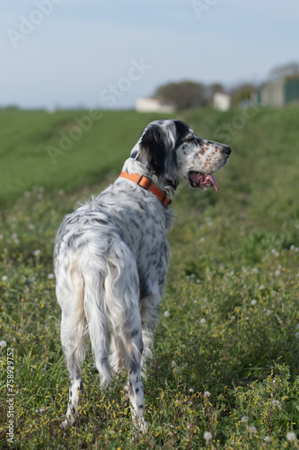 dog, spaniel, pet, animal, spring, poser, white, canino, pretty, puppy, grass, brown, race, black, domestic, play, portrait, pointer, cocker, green, purebred, setter, english