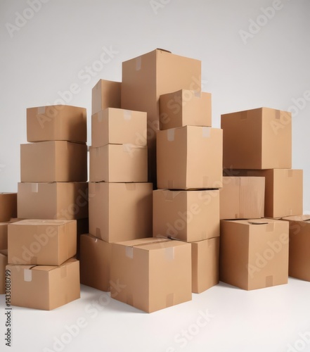 Several empty brown cardboard boxes against white backdrop , clean, waste